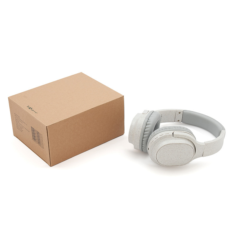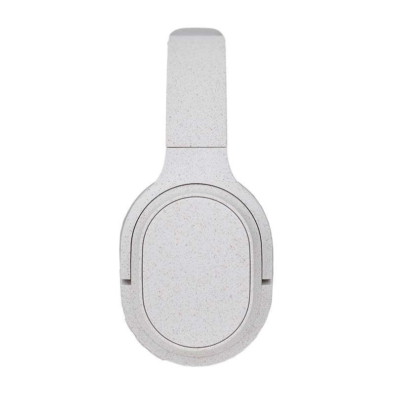 Auriculares inalámbricos estilo diadema, con micrófono incorporado. Realizado en ABS y Wheat Straw, pasta de tallo de trigo, un material sustentable que reduce el consumo de plásticos vírgenes. Cuenta con cobertura bluetooth en una distancia de 10 metros y conector para cable jack de 3.5mm, y ranura para tarjetas de memoria. Incluye cable micro USB de carga. Incluye botones de comando para encender, apagar, retroceder y avanzar. Su capacidad de carga es de 450mAh. Medidas: 195 x 165 x 75 mm. Tiene una potencia de 15mWx2 y una sensibilidad de 85dB. Impedancia: 32 Ω. Bluetooth: 5.1.