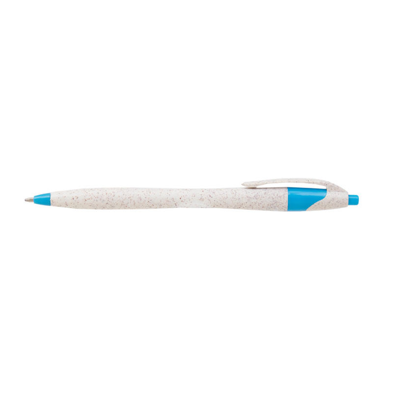 Bolígrafo confeccionado en Wheat Straw, pasta de tallo de trigo, un material sustentable que reduce el consumo de plásticos vírgenes y ABS. Tinta de color Negro. Apertura con sistema retráctil.