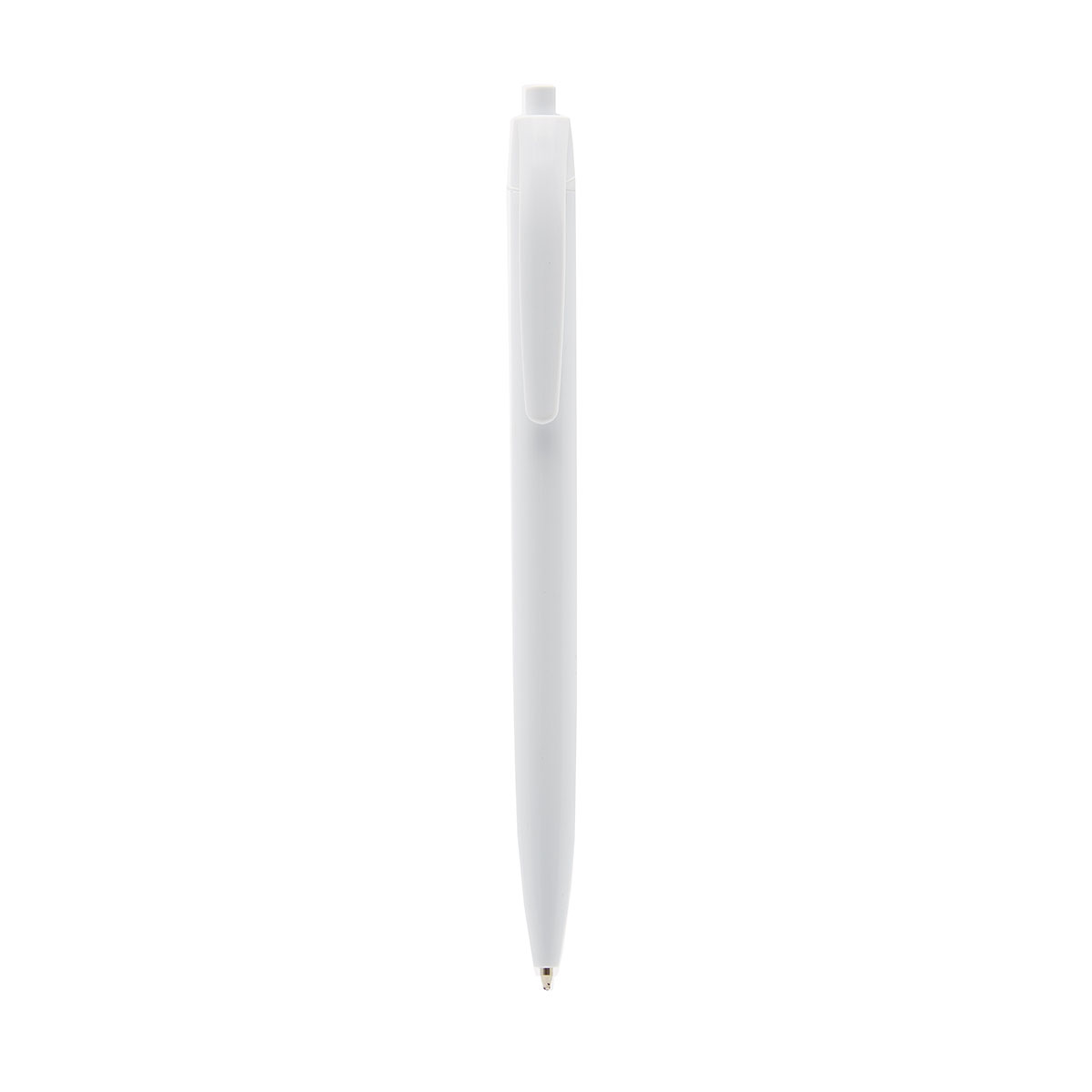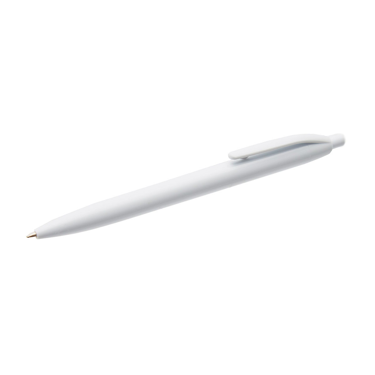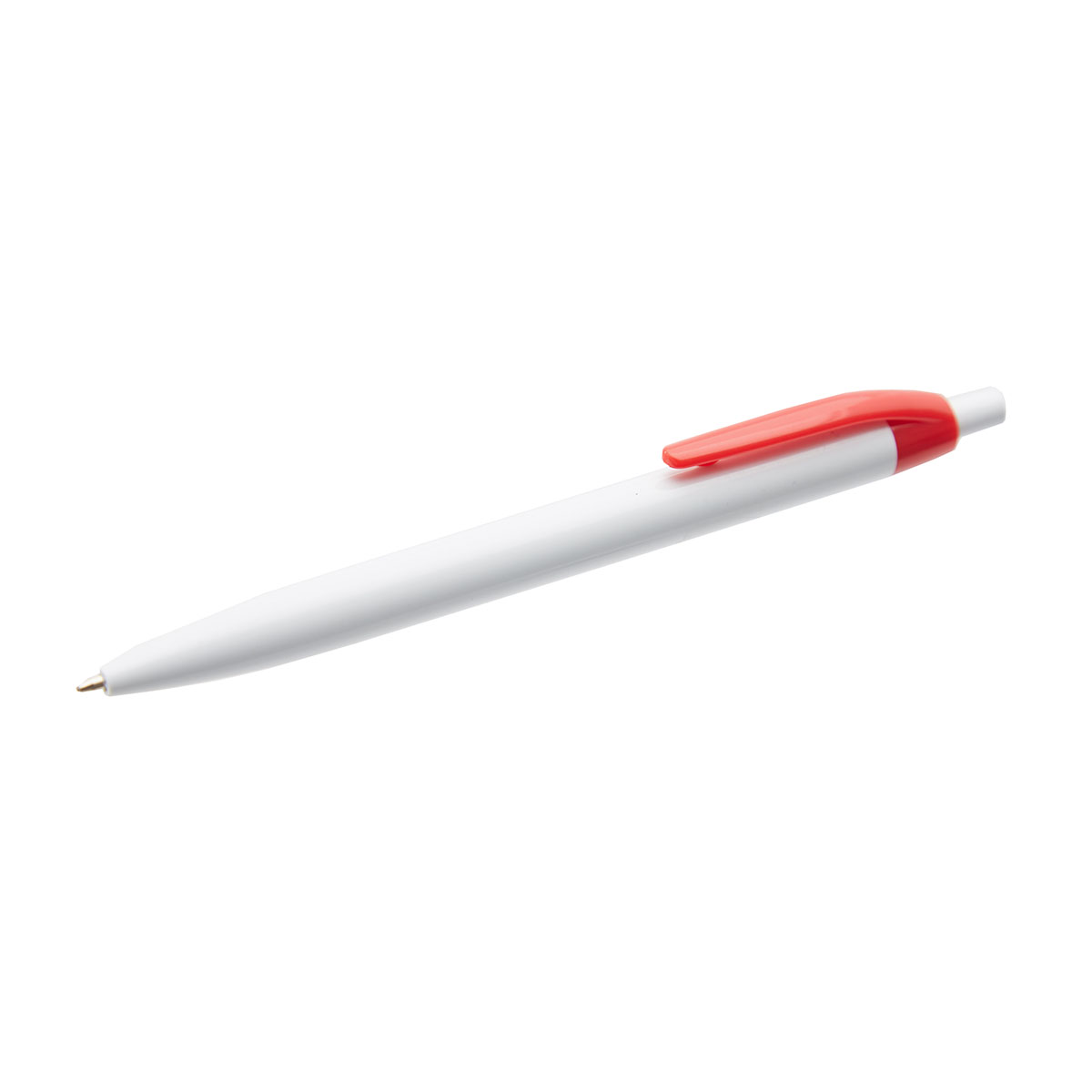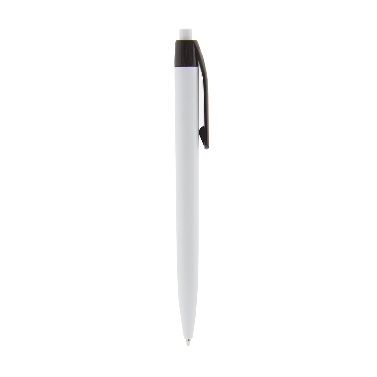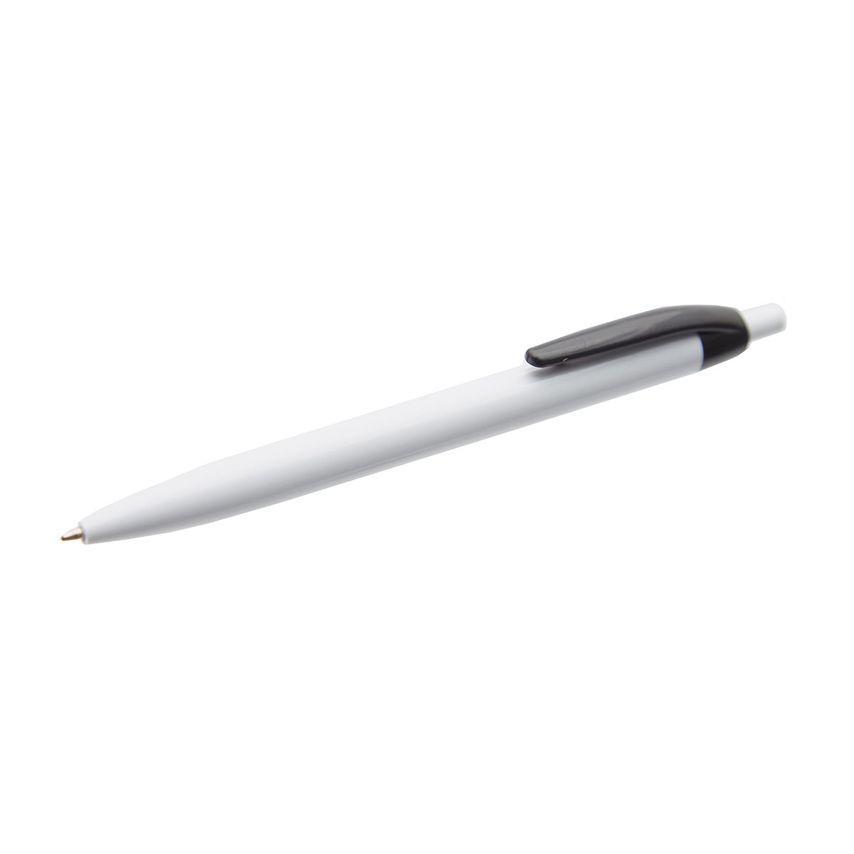 Bolígrafo con cuerpo plástico blanco. Clip de color. Retráctil. Tinta negra. Tahg