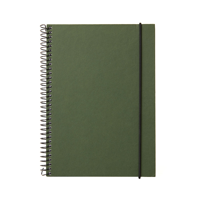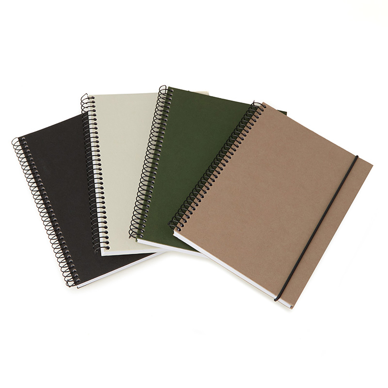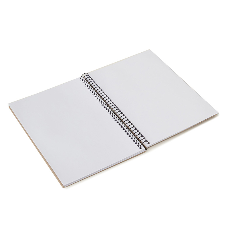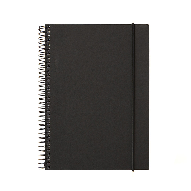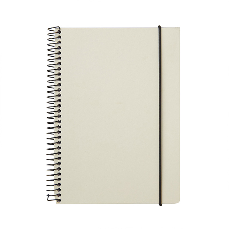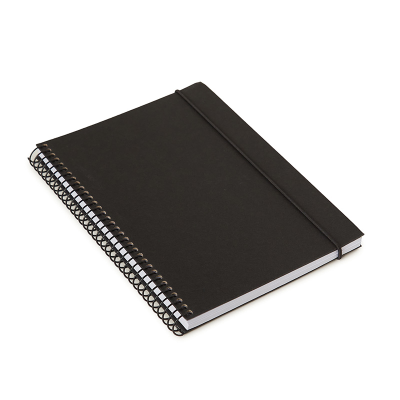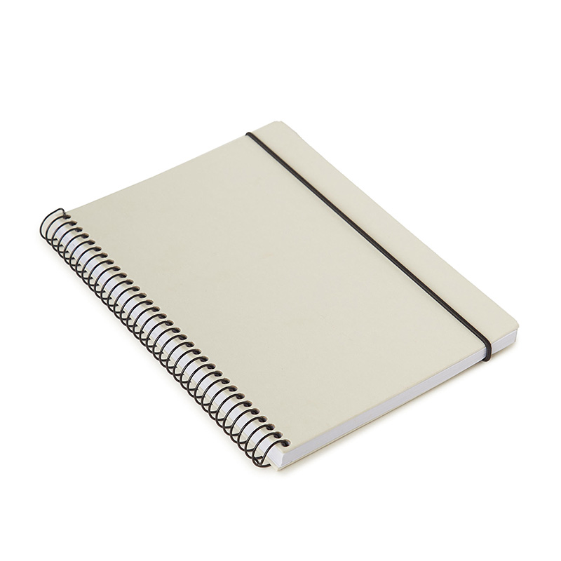 Cuaderno anillado con tapa confeccionado con papel Kraft y 100 hojas lisas de 170 gr. Cuenta con un cierre elástico. Medidas : 14,8 x 21,2 cm. Se presenta protegido en bolsa. ReUseMe.