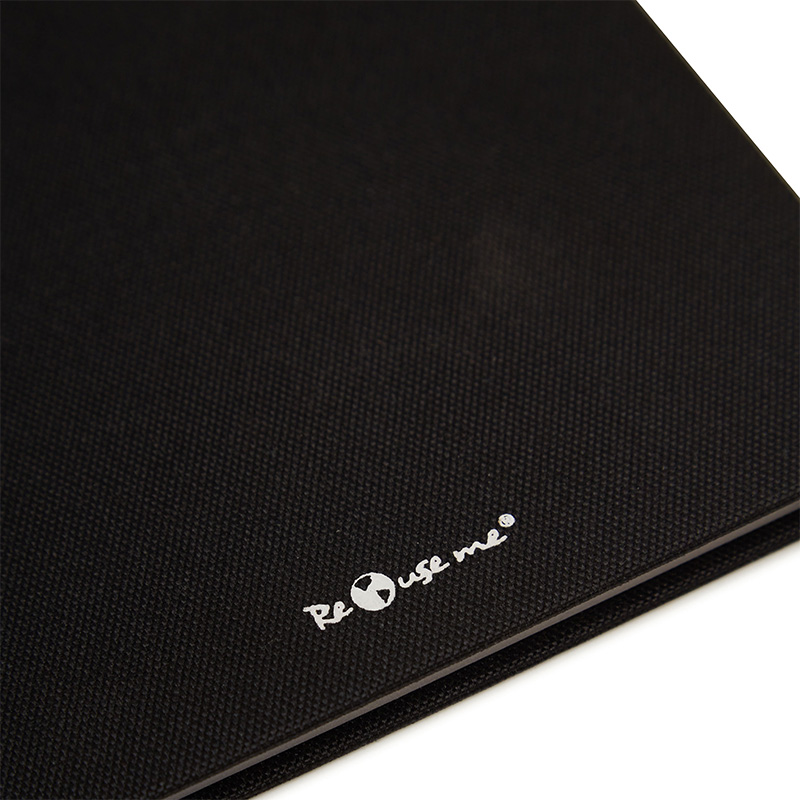 Cuaderno de tapa confeccionado con polyester RPET, hecho con botellas de plástico reciclado. Con 64 hojas lisas de Papel de 120 gramos a base de piedra, de escritura suave, más duradero y resistente que el papel tradicional. Para realizar este papel no se han talado árboles, ya que está confeccionado a partir de Polietileno y polvo de piedras. Cuenta con una cinta marcadora y borde de página de color. 64 hojas lisas de 120g. Medidas : 14,8 x 21cm. ReUseMe.
