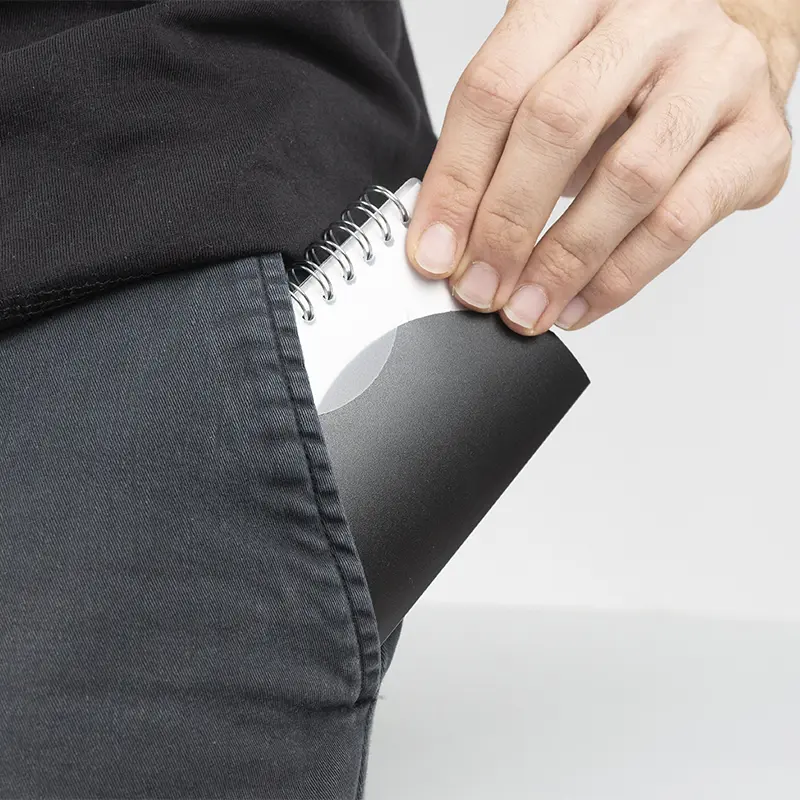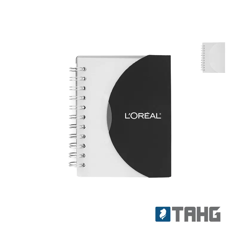Cuaderno de bolsillo, anillado con tapa de PP y 60 hojas lisas. Medidas 10,8 cm x 7,8 cm. Tahg