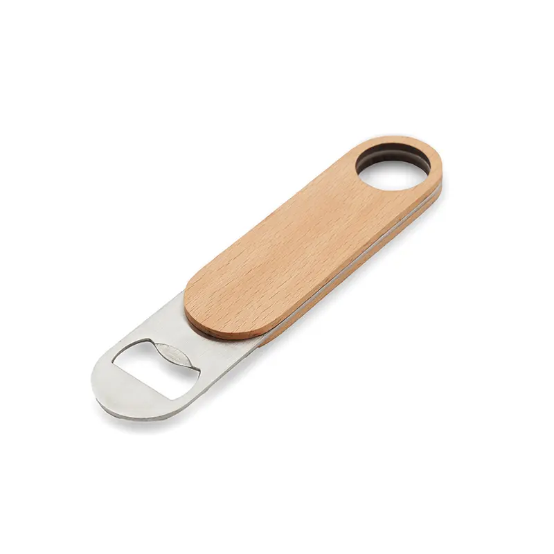 Abrebotellas fabricado en madera de haya y acero inoxidable 420SS.